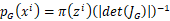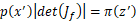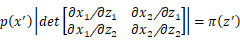映射,形成右图所示x域上的浅绿色菱形区域。其中,二维分布π(z)与p(x)均服从简单均匀分布,其高度在图中未画出(垂直纸面向外)。