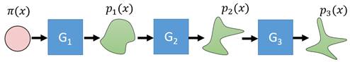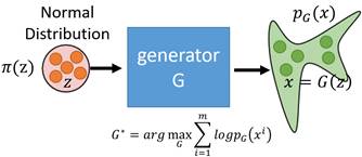 如果这个变换函数能找到的话,那么我们就实现了一个生成模型的构造。因为,p(x)中的每一个样本点都代表一张具体的图片,如果我们希望机器画出新图片的话,只需要从π(z)中随机采样一个点,然后通过