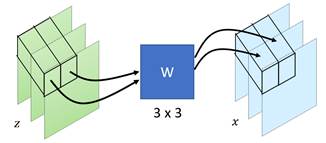 的仿射计算(affine)传递给x。综上,由z传给x的计算式可以写为: